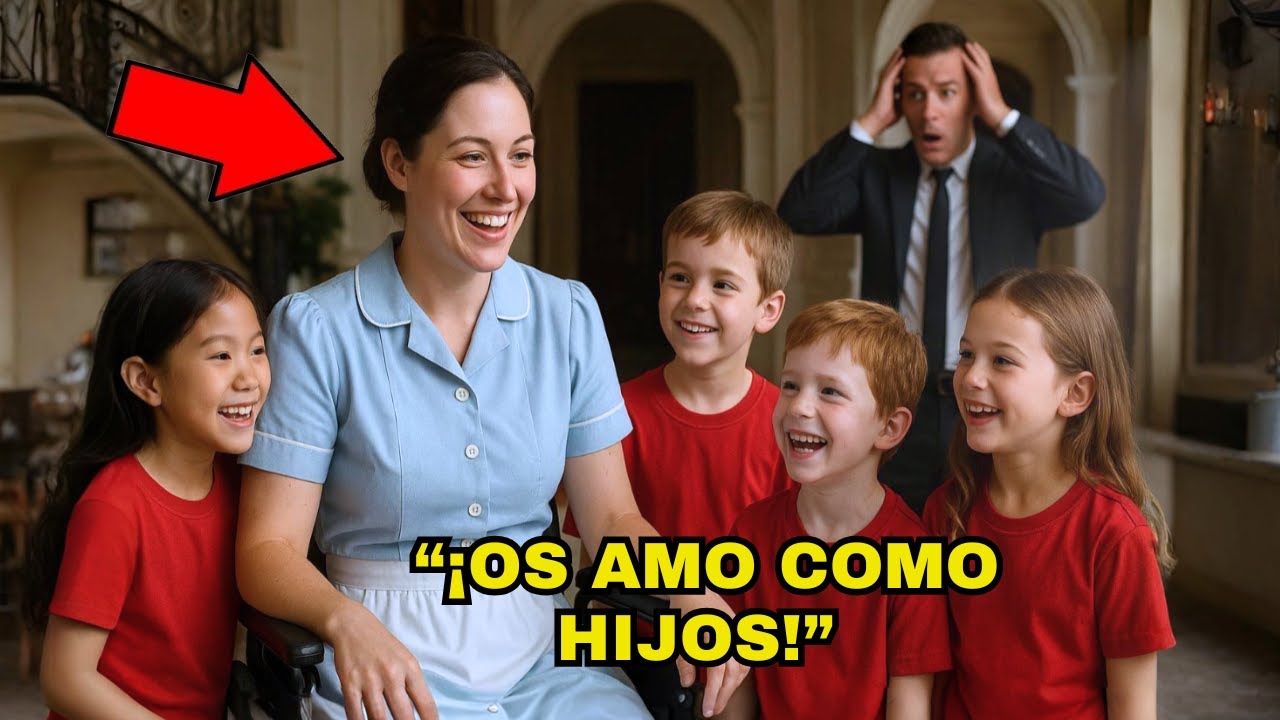 Su corazón se aceleró, sus hijos riéndose. En su casa aquello parecía imposible. Desde la muerte de su esposa, el eco de la risa se había extinguido en esas paredes. Entró con paso sigiloso y lo primero que vio fue la escena más desconcertante de su vida. Clara, la mujer en silla de ruedas, estaba en el salón con los cuatro niños alrededor. Habían improvisado una especie de teatro con sábanas y lámparas.
