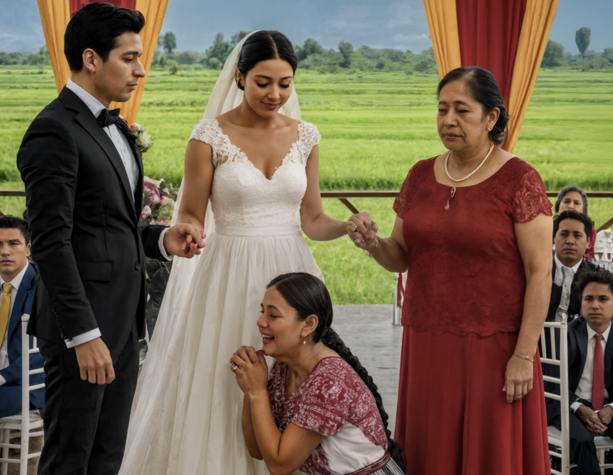 El murmullo se elevó como un estruendo. Sentí que me fallaban las piernas, mi corazón tamborileaba en mi pecho. Las mandíbulas se desencajaron. Mi hijo se quedó petrificado, mientras la novia se desplomaba en el suelo, conmocionada.