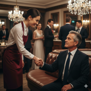 La incomodidad no necesita traducción. Mientras tanto, entre bandejas y copas vacías, Julia caminaba con agilidad por el salón. esquivando conversaciones que no le pertenecían. Tenía 24 años, ojos atentos y una expresión que intentaba mantenerse neutra, aunque sus pensamientos rara vez se callaban. Vestía el uniforme del personal, camisa blanca, chaleco negro y un delantal bien planchado.