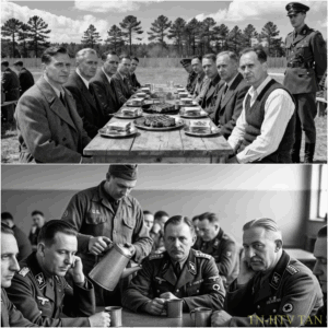 Los cuchillos rasparon contra la porcelana, lentos y tentativos al principio, luego constantes. Al otro lado de la mesa, un guardia estadounidense servía café en tazas pesadas, el aroma mezclándose con la carne chisporroteante. No se hicieron preguntas, no se hicieron amenazas. Solo el tintineo de los utensilios llenaba el silencio. Por primera vez desde su cautiverio, los generales probaron algo parecido a la comodidad, y eso los inquietó más de lo que cualquier interrogatorio podría haberlo hecho.