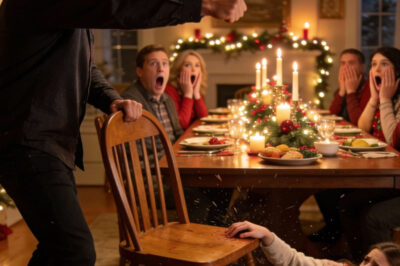 Mi padrastro me empujó en la mesa de Navidad: “Este asiento pertenece a mi hija de verdad, lárgate.” Caí al suelo delante de toda la familia, pero lo que él no sabía era que esa misma noche yo cambiaría su vida para siempre…