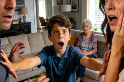 Mi esposo me abofeteó delante de su madre, quien simplemente se quedó sentada con una sonrisa arrogante — pero nuestro hijo de diez años se levantó de un salto, y lo que hizo después los hizo arrepentirse de haberme tocado. Fue un momento que jamás olvidarían…